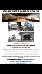 Vanaf 17.30 start een historische tocht door Katwijk ad Rijn. Leuk met familie, vrienden of buren. Van de kapel van de Wilbert naar de Roskam en de molen de Geregtigheid. Dit alles onder het genot van een hapje en een drankje.