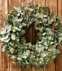 Krans maken van eucalyptusblad. Met een doorsnede van 50-55 cm. Je kunt heel lang plezier hebben van deze krans. Inclusief wat lekkers en een bakje koffie/ thee bij de Friends te Katwijk.